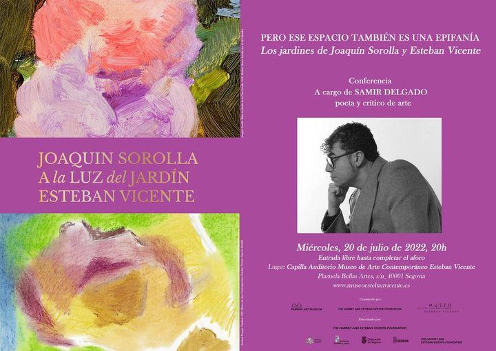 Conferencia a cargo de Samir Delgado 'Pero ese espacio también es una epifanía. Los Jardines de Joaquín Sorolla y Esteban Vicente' el miércoles 20 de julio a las 20:00h en la capilla del Auditorio del Museo de Arte Contemporaneo Esteban Vicente.