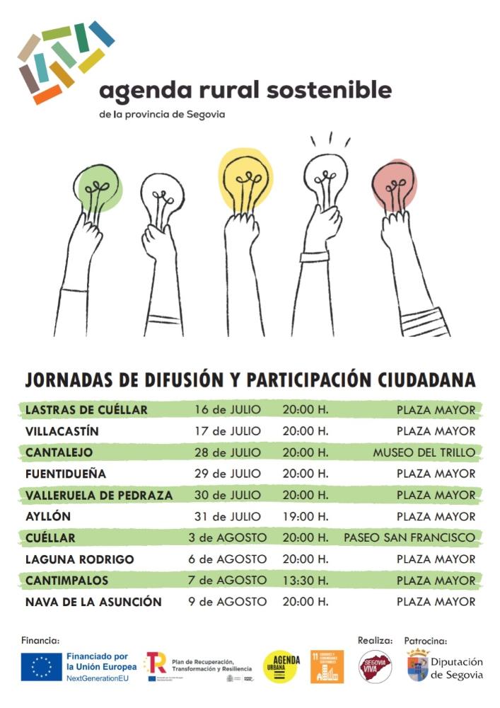 Jornadas de difusión y participación ciudadana en varios municipios de la provincia de Segovia a cargo de Segovia Viva y con motivo de la elaboración de la Agenda Rural Sostenible de la Diputación de Segovia.