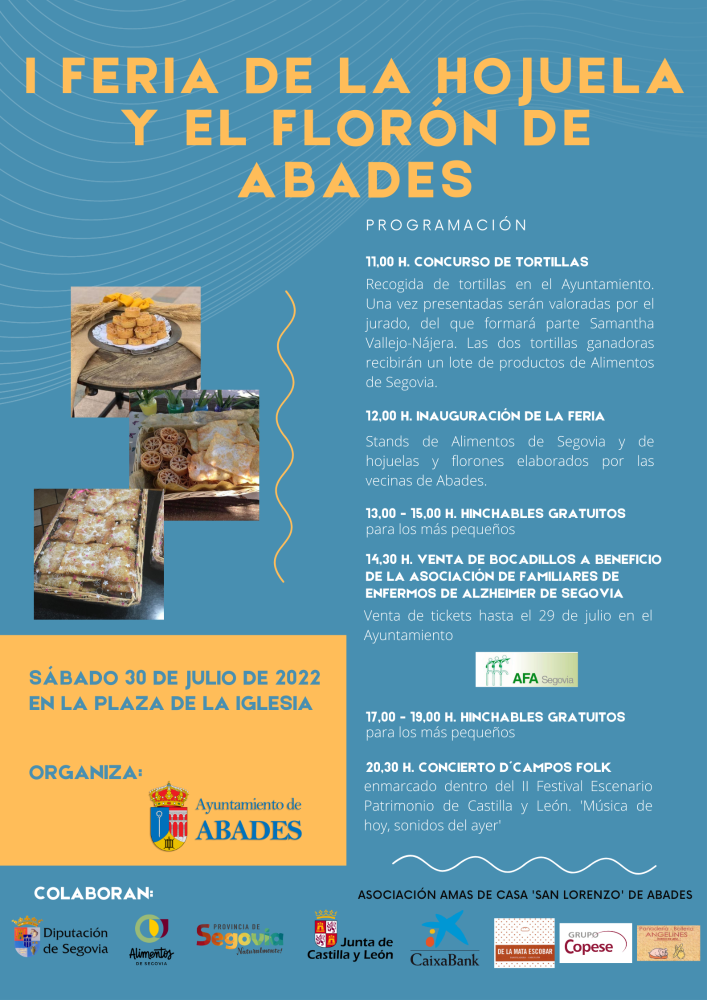 Este sábado 30 de julio se celebra la I Feria de la Hojuela y el Florón de Abades, que estará acompañada por la II Caravana de Alimentos de Segovia