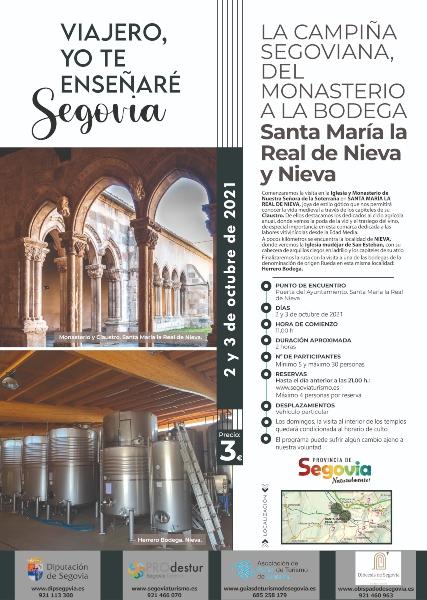 El sábado 2 y el domingo 3 de octubre las rutas del programa 'Viajero, yo te enseñaré Segovia' continúan con las visitas guiadas a Sta Mª La Real de Nieva y Nieva