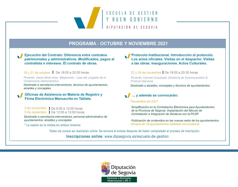 Toda la información actualizada y los formularios de inscripción en la Web:   https://www.dipsegovia.es/escuela-de-gestion