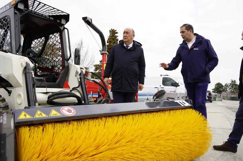 El Servicio de Vías y Obras ha adquirido nueva maquinaria para continuar con el trabajo que garantiza la conservación y mantenimiento de toda la red provincial. La inversión total supera los 236.100 euros, dado que el entramado de carreteras que gestiona la Diputación de Segovia supera ampliamente los mil kilómetros de longitud total, siendo un trazado mayor que los que suman la Administración General del Estado y la Junta de Castilla y León en el territorio segoviano. El presidente de la institución provincial, Miguel Ángel de Vicente, ha conocido de primera mano estas nuevas unidades adquiridas. Ha sido en una visita al Parque de Maquinaria de la Zona de Segovia, que se ubica en Palazuelos de Eresma, en la que le ha acompañado el diputado delegado de Vías y Obras, Benjamín Cerezo.
