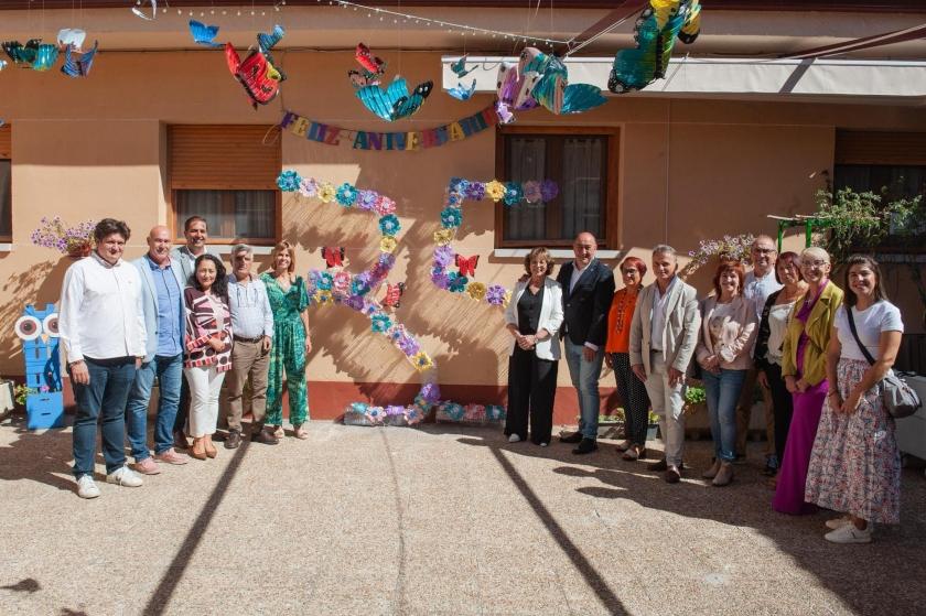 En cuanto a la celebración, ha sido las propias personas que habitan en la residencia las que han participado en la elaboración y colocación de la decoración en el patio principal. Ornamentación que además ha sido confeccionada a partir de materiales reciclados, tomando cajas de fruta o bidones de agua, entre otros elementos, con los que han conseguido otros elementos inspirados en motivos vegetales o florales, así como una composición de gran tamaño, con la cifra conmemorativa del aniversario. En ese escenario, han podido disfrutar con la música de un DJ y un aperitivo en el que compartir sensaciones y alegrías por el camino recorrido.