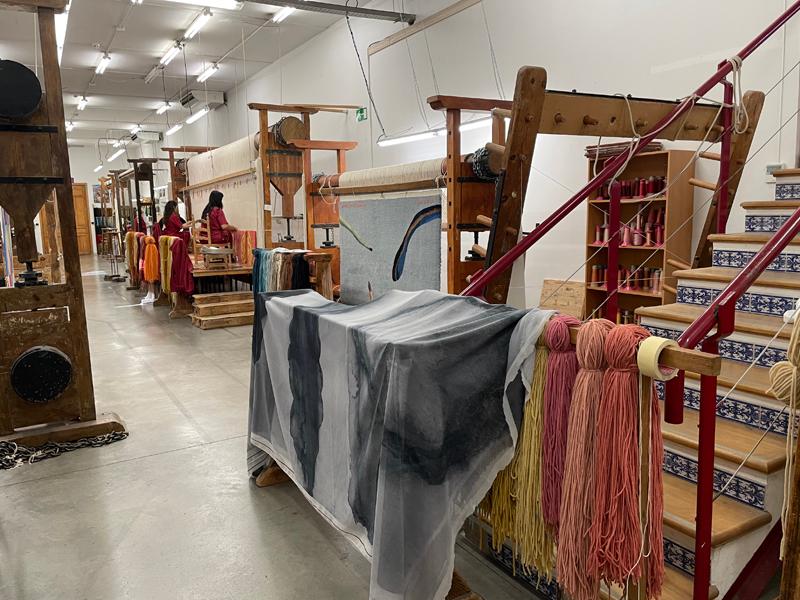La Real Fábrica de Tapices no sólo ha sido imprescindible para la confección de 'Ungüentario', la alfombra de nudo turco inspirada en el tapiz 'Ulises acepta los regalos de Alcinoo' que desde el día 8 luce en la Catedral de Segovia, sino que ahora, además, funciona como núcleo conceptual y material del ciclo; el lugar donde el gesto artístico regresa a su origen, al hilo, al tiempo, a la repetición y a la memoria.
