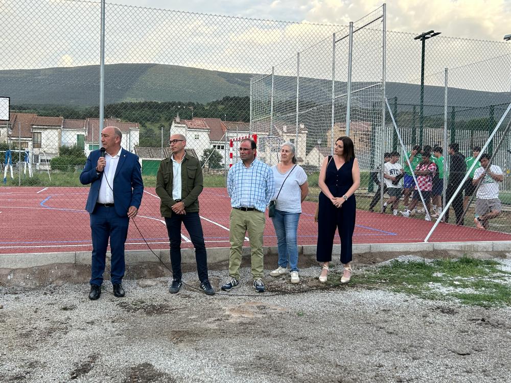 Esta infraestructura cuenta con una pista de fútbol sala con dos porterías, así como con dos pistas de baloncesto, con cuatro canastas, aprovechando el ancho de la cancha de fútbol sala. Se trata, por tanto, de una instalación versátil que los más jóvenes del municipio estrenaron con un partido amistoso que disputaron algunos de los jugadores del equipo del pueblo.