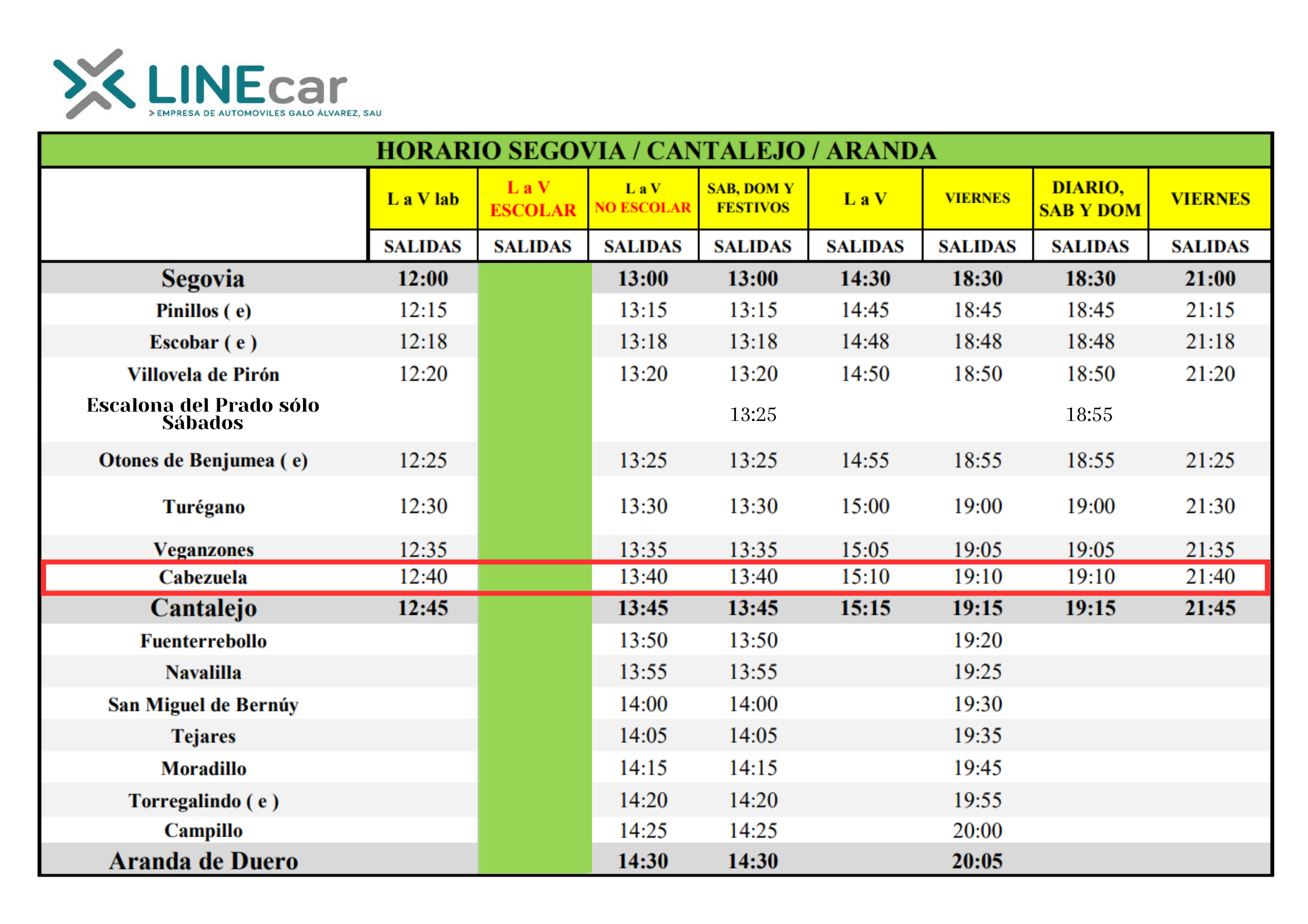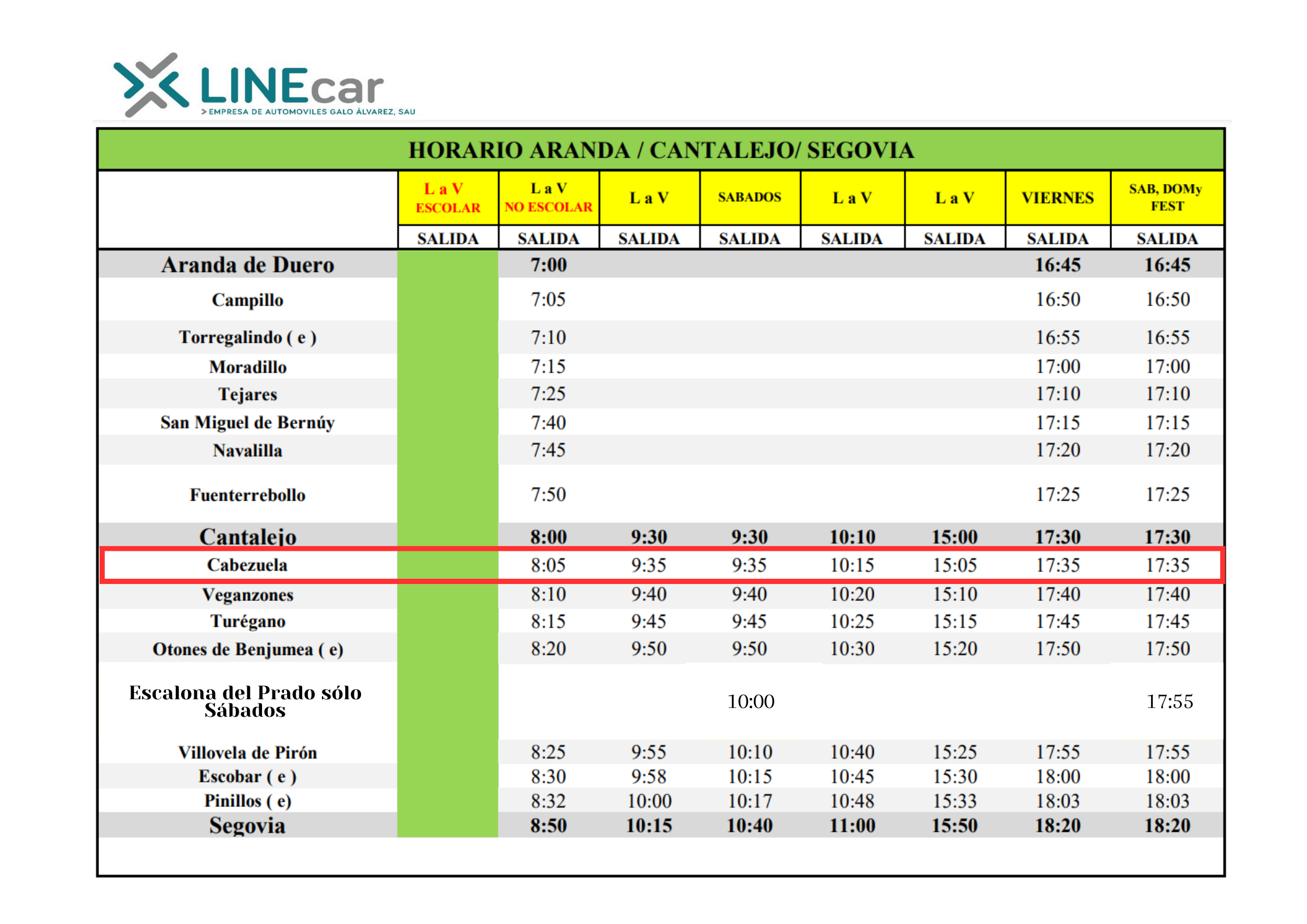 TRANSPORTE AUTOBÚS SEGOVIA-CABEZUELA