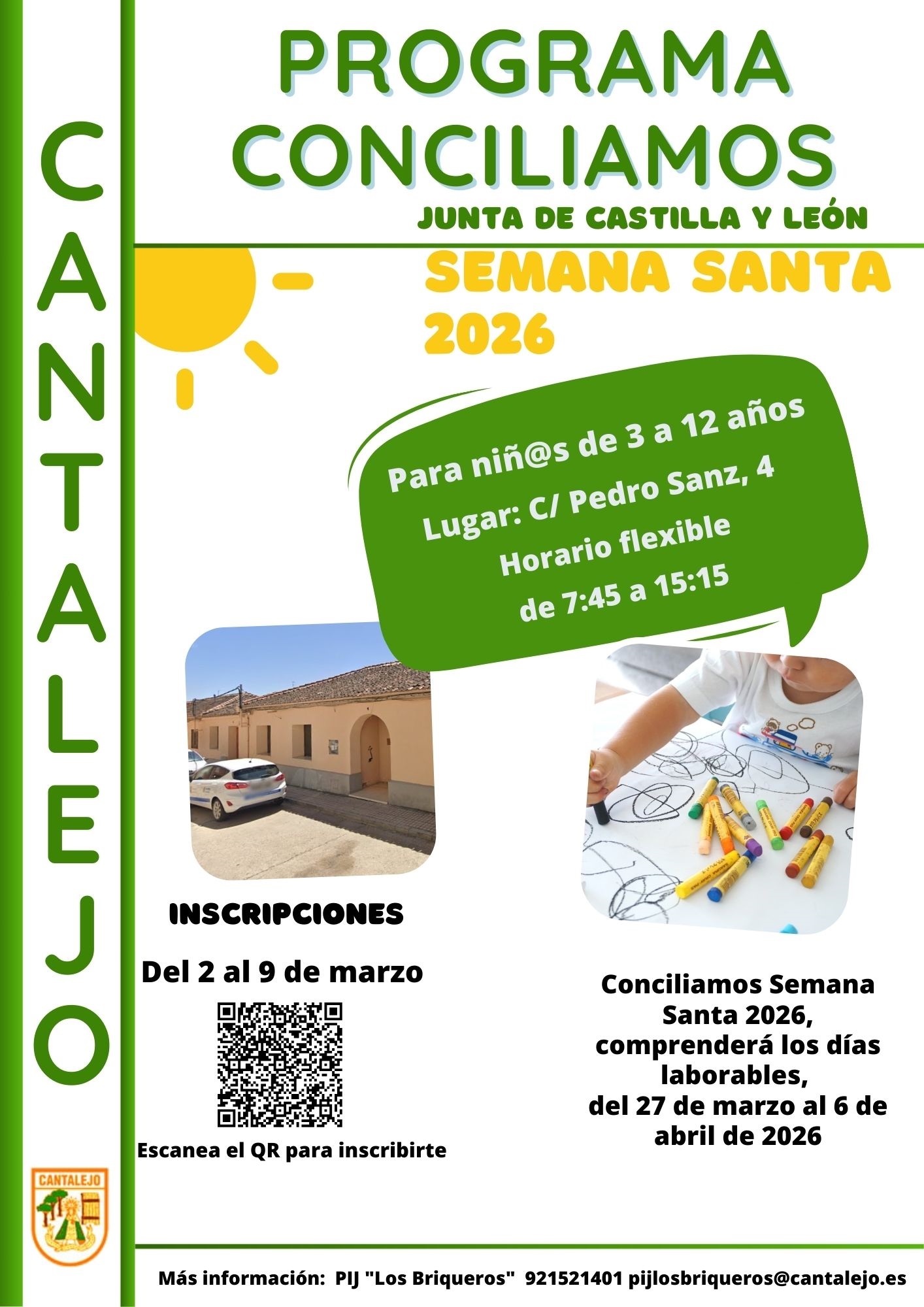 El programa Conciliamos, está dirigido a la atención lúdica de los niños y niñas escolarizados durante los períodos vacacionales, con la finalidad de favorecer la conciliación de la vida personal, familiar y laboral de las familias castellanas y leonesas. Comprenderá los días laborables, desde el 27 de marzo al 6 de abril de 2026.