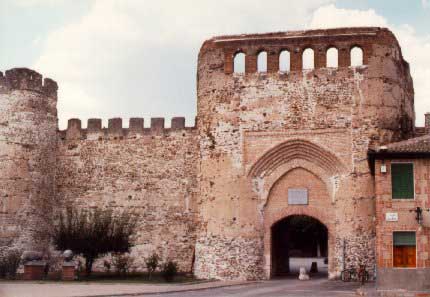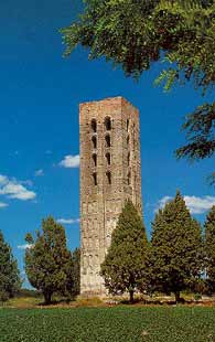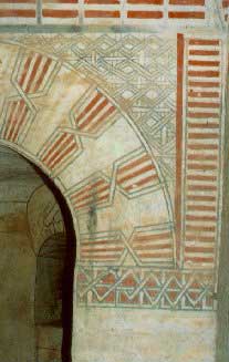 El ladrillo se utiliza no sólo como material de obra sino también como elemento decorativo, creando llamativos juegos de color (crestería de ladrillo curvo y más rojo) y de formas (friso de arquitos ciegos hechos de ladrillos colocados en estrías). Los garitones se hallaban estucados y pintados con motivos geométricos de color rojo y azul, que aumentaban el cromatismo del conjunto, como aún puede observarse en muchos de ellos.