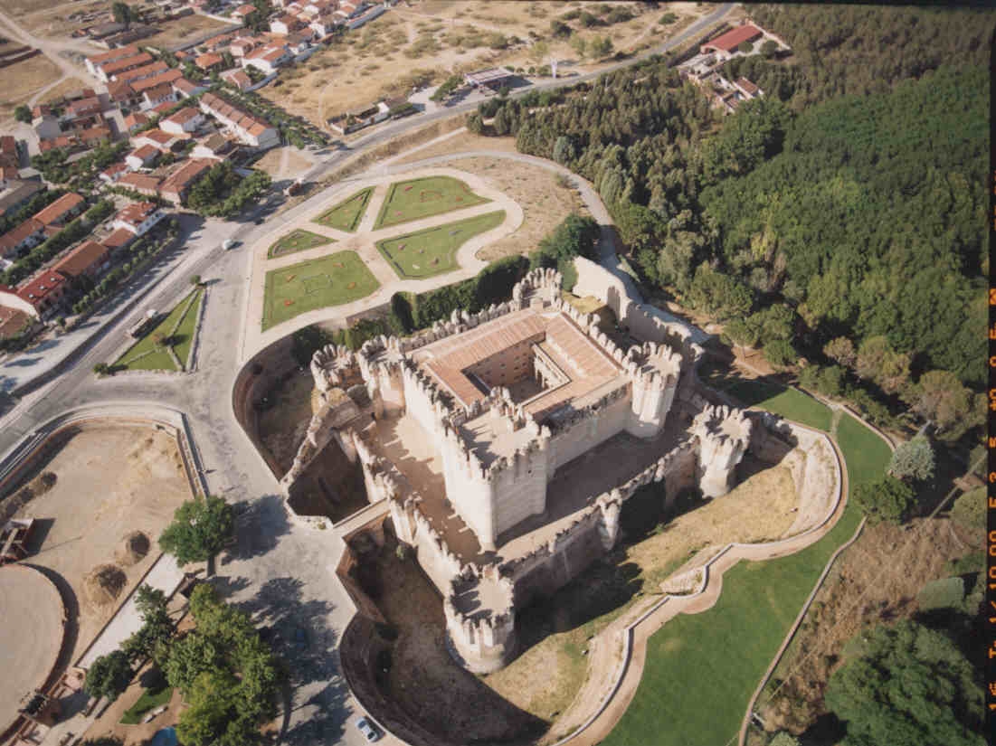 Al no estar construido sobre una colina, sino junto a los escarpes del río Voltoya, que aquí forma un extenso meandro, fue preciso rodear el edificio de un profundo foso que alejara a los posibles sitiadores de sus muros. Tras el foso, dos grandes recintos: uno exterior, de función defensiva, y otro interior, más elevado y con torres en las esquinas, que protege las salas y dependencias. Éstas se disponen en torno a un patio central o Patio de Armas.