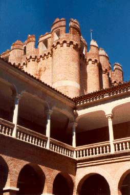En el interior la riqueza cromática es aún mayor: la azulejería mudéjar del Patio de Armas (hoy desaparecida) y las pinturas murales de las salas aumentaban este derroche de color nada propio de la Castilla interior.