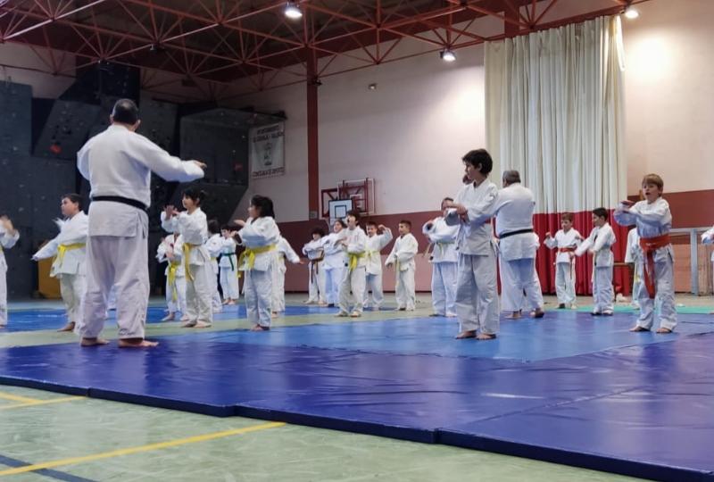 Por su parte, durante la mañana del domingo, los quimonos de cerca de doscientos menores vistieron de blanco el pabellón granjeño, donde además de reunirse estudiantes de siete centros escolares de la capital, fueron convocados también pequeños llegados de once municipios de la provincia.