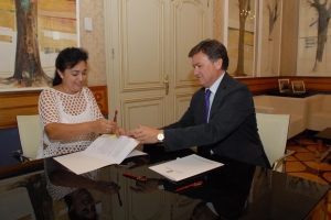 El Presidente de la Diputación ha firmado esta mañana en su despacho con Mª Carmen Muñoz Romero , en representación de la Asociación Segoviana de Universitarios "Horizonte Cultural" un convenio de colaboración anual entre ambas partes por el que la Asociación recibirá 4000€ de la Diputación para la organización de actividades programadas por Horizonte Cultural.