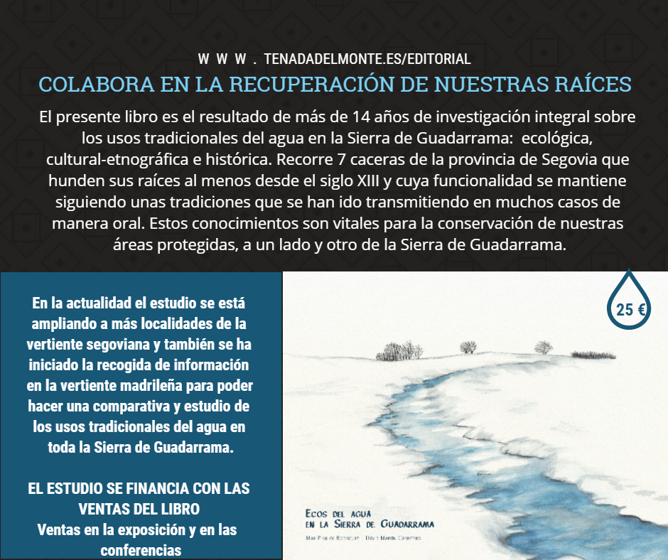 En cada una de las poblaciones que visitará la exposición, se impartirá una charla sobre la cacera o caceras que existen en el término municipal, fruto de las investigaciones de 14 años. Además, se intentará obtener fondos para continuar las investigaciones sobre los usos tradicionales del agua en la vertiente segoviana de Guadarrama mediante la venta del libro "Ecos del agua en la Sierra de Guadarrama".