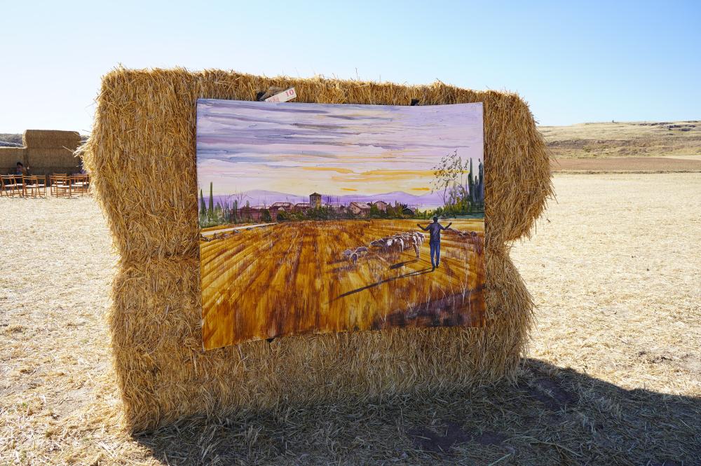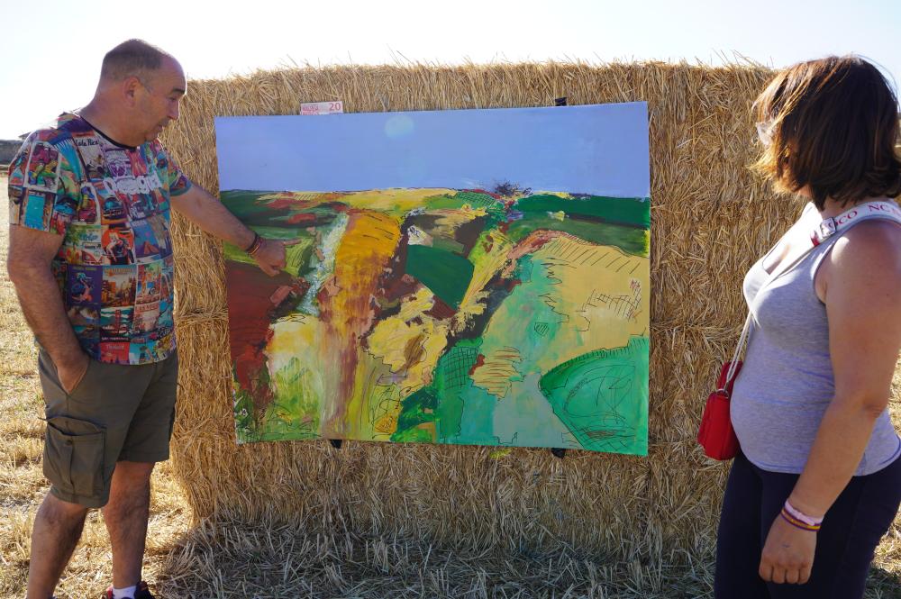 Con un ambiente fresco, nada parecido al de los últimos años, daba ayer comienzo a las diez de la mañana la decimocuarta edición de ‘Arte en la Naturaleza’ de Espirdo, el certamen de pintura entre pacas de paja con el que cada primer fin de semana de agosto colabora la Diputación y su marca agroalimentaria Alimentos de Segovia. Nueve horas después de su comienzo, y tras una jornada en la que finalmente el sol y el calor no dieron tregua, Miguel González Segovia recogía, de manos del presidente de la institución provincial, Miguel Ángel de Vicente, y de la alcaldesa del municipio, María Cuesta, el primer premio de la cita coordinada por el artista Christian Hugo, y del que, en esta ocasión, fueron jurado la alcaldesa de Brieva, Pilar Martín, y el también artista Mariano Carabias.