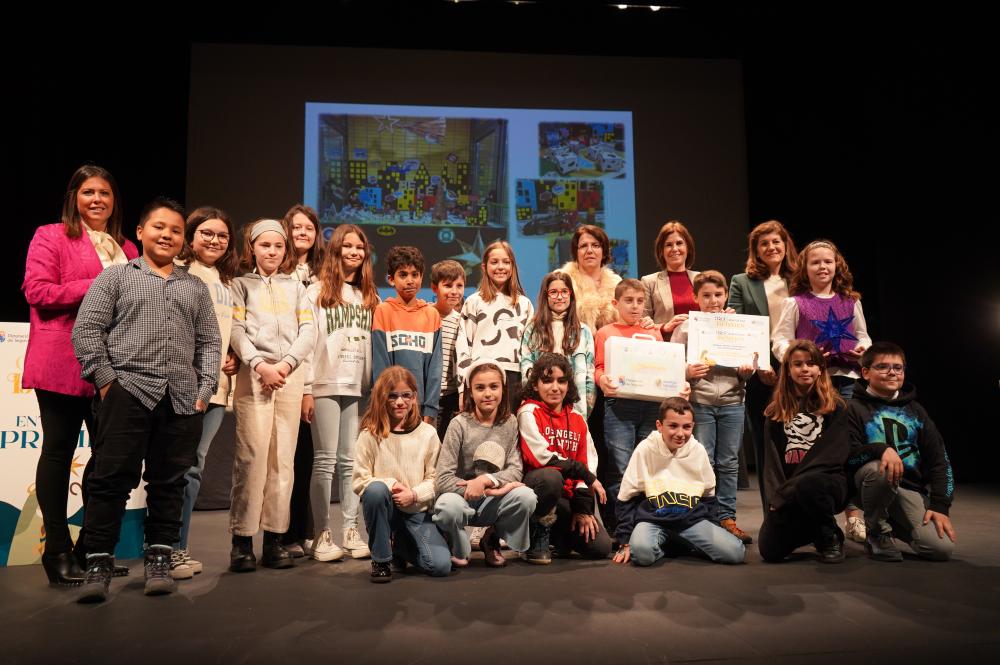 Entre trucos de magia y entregas de premios, antes de dar por concluido el acto, el presidente de la Diputación aprovechaba también la ocasión para hacer entrega del lote de Alimentos de Segovia ganado por los alumnos de 1º de Primaria del colegio Fray Juan de la Cruz, gracias a su participación en el concurso ‘Buscando a San Frutos’, convocado durante el periodo navideño con motivo de la exposición del Belén de Playmobil en el patio de Columnas del Palacio Provincial.