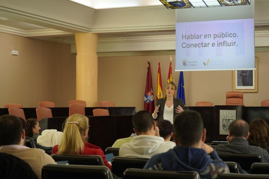 Bajo el título ‘Hablar en público. Conectar e influir’, impartido por la creadora de ‘Sepúlveda Viva’ y especialista en Comunicación, Ana Herrero, ha tenido lugar esta semana la segunda cita del calendario de cursos de la Escuela de Gestión y Buen Gobierno de la Diputación. Durante dos sesiones, que se alargaron más de dos horas cada una, la formadora compartió algunas de las claves que facilitan la comunicación y el aprendizaje de habilidades para hablar ante una audiencia.
