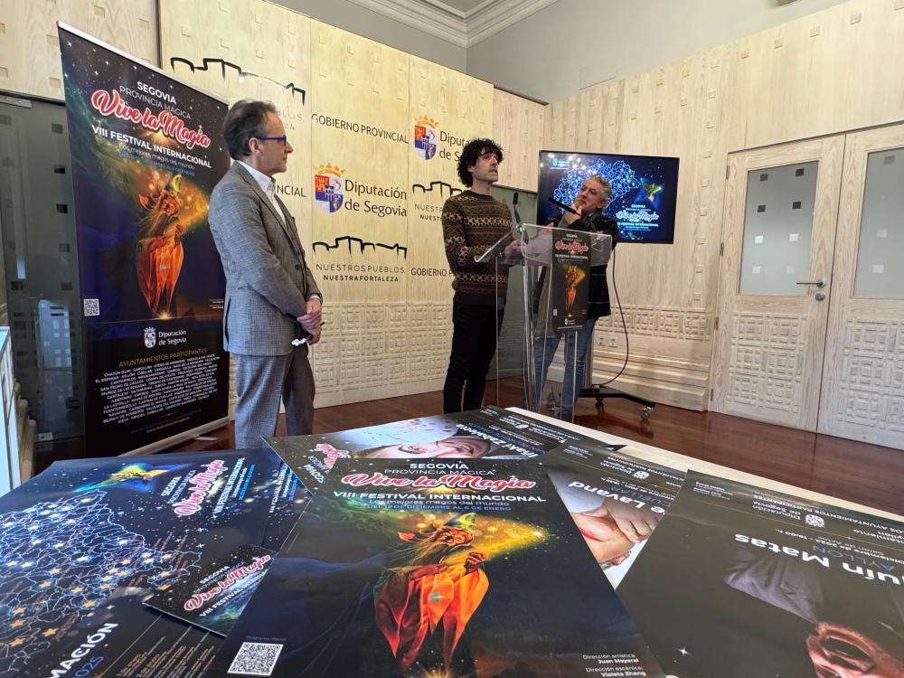 Este proyecto persigue la programación y desarrollo en los pueblos segovianos de actuaciones relacionadas con la magia, la prestidigitación o el ilusionismo, eligiéndolas entre el catálogo ofrecido y que se irán sucediendo entre el 14 de diciembre y el 6 de enero de 2024, como ha quedado de manifiesto en la presentación que ha tenido lugar en el Salón del Trono, con la intervención del vicepresidente primero de la Diputación y responsable del Área de Cultura, Juventud y Deportes, José María Bravo, y el responsable de Vive la Magia, Adolfo Casas.