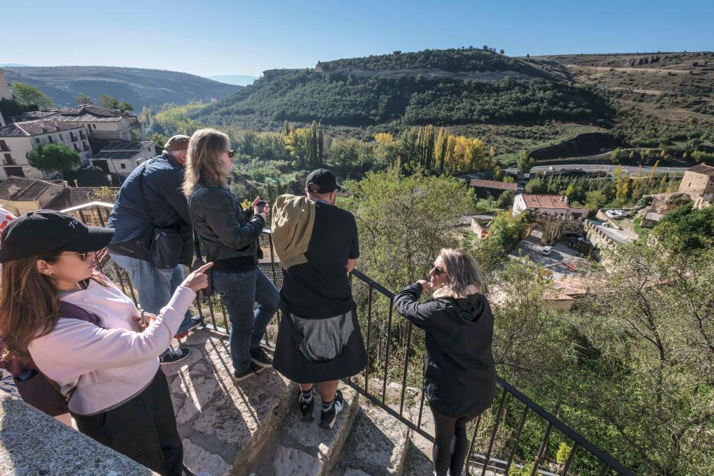 También se incluyó en el recorrido una visita a las Hoces del Río Duratón, desde Villaseca, en concreto hasta el mirador de la Ermita de San Frutos, donde disfrutaron de un entorno natural mágico, que ofrece muchas posibilidades para grabar películas, spots publicitarios, documentales o cualquier tipo de rodaje, que ya ha sido escenario de series como ‘La casa de papel’. De una localización natural, los participantes en este ‘fam trip’ se trasladaron a uno de los pueblos más bonitos de la provincia, Pedraza, donde cambiaron impresiones en la comida, para pasear después por la villa y conocer el recién adquirido Castillo de Pedraza para rodajes y eventos, por parte de los actores y productores Santiago Segura, José Mota y Luis Álvarez.