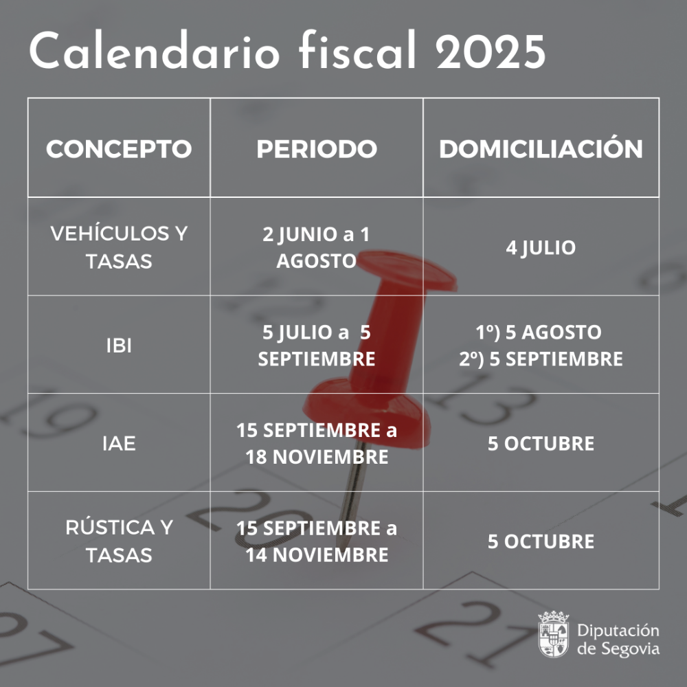 El Boletín Oficial de la Provincia publicó el viernes 7 de marzo el calendario fiscal para 2025. Estará disponible en este, la página web de la institución provincial en el tablón de anuncios de los Servicios Tributarios y en la Oficina Virtual Tributaria la relación de los tributos.