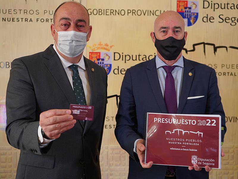 El presidente de la Diputación, Miguel Ángel de Vicente, acompañado del diputado de Hacienda, Óscar Moral, ha presentado esta mañana el Presupuesto de la institución provincial para el año 2022 que trasladará al Pleno el próximo martes 21 de diciembre. De Vicente ha dado a conocer hoy el presupuesto más alto de la historia de la Diputación de Segovia, que contempla 73.933.000 millones de euros, un 10,34% y 6.933.000 euros más que en 2021. "Este es nuestro tercer Presupuesto como equipo de Gobierno y venimos de unos presupuestos prudentes en 2020, donde la regla de gasto junto con la estabilidad presupuestaria eran el denominador común. El año pasado, en 2021, con la suspensión de las reglas fiscales a los territorios de la Unión Europea, presentamos y ejecutamos unas cuentas ambiciosas, pero responsables y honestas con las necesidades de la nuestra provincia. Hoy, planteamos para 2022, los presupuestos más altos de la historia de la institución provincial, llegando prácticamente a los 74 millones de euros", ha comenzado a explicar Miguel Ángel de Vicente. Desde que en 2020 se aprobara un Presupuesto de 59,5 millones euros, pasando por los 67 millones del pasado ejercicio y hasta llegar a los 74 millones de este año, las cuentas de la institución provincial han experimentado un aumento del 24,31%, lo que significa que "de cada cuatro euros actuales, un euro es inversión nueva".