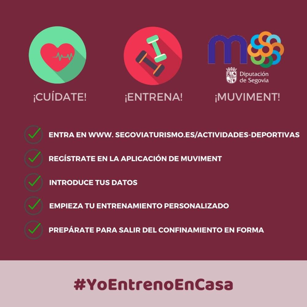 Desarrollado por las empresas TECH friendly y Runnea, esta aplicación web ayuda a los territorios a activar y mejorar la forma física de su ciudadanía. La institución provincial ofrece este servicio de forma totalmente gratuita para los usuarios, con tal sólo realizar un sencillo registro a través de estos dos enlaces: www.muviment.com/training/segovia o www.segoviaturismo.es/actividades-deportivas. Con esta aplicación web, "pretendemos ayudar a los vecinos de nuestros pueblos a que se tomen una actitud activa en esta cuarentena provocada por la crisis del COVID19, y así poder evitar futuros problemas de salud derivados del sedentarismo provocado por este periodo", tal y como ha destacado la diputada de Turismo, Magdalena Rodríguez.