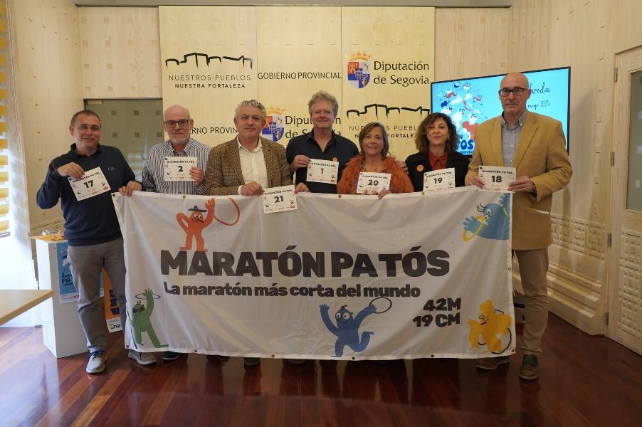 La Diputación de Segovia colabora de un modo importante con la Maratón y ha estado representada en la comparecencia por su vicepresidente, José María Bravo y por el diputado de Deportes, Óscar Moral. Por parte de la organización, han asistido Juan Luis Cano, representando al dúo Gomaespuma y Piluca Santos como presidenta de la Fundación. Además, por parte del Ayuntamiento de Sepúlveda ha asistido el concejal José Palermo y por parte de la Asociación cultural sin ánimo de lucro Corderitititito, su presidenta Sonia Antón. El vicepresidente ha agradecido que “una actividad de esta envergadura se celebre en un pueblo de la provincia de Segovia, fuera de una gran ciudad”, reivindicando que “los pueblos también pueden albergar y dar visibilidad a este tipo de eventos”. Mientras que Moral ha querido destacar “la importancia de fomentar desde las instituciones el deporte inclusivo y la solidaridad entre nuestros vecinos, con actividades como La Maratón Pa Tós”.