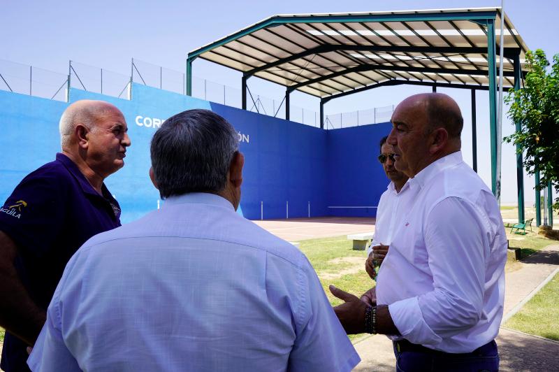Tras visitar Sequera del Fresno y Bercimuel, presidente y diputados se desplazaban algo más al este para acabar la mañana en Riaguas de San Bartolomé y Corral de Ayllón, donde eran recibidos por Luis Fernando Pérez y José Miguel Arribas respectivamente. Mientras el primero, novel en el cargo al igual que Iván López, ha aprovechado los más de 40.000 euros de PESE, Fondo de Cohesión Territorial y PAIM para rehabilitar una vivienda y un edificio municipal, el segundo, con más de un cuarto de siglo a sus espaldas como alcalde, ha invertido 8.892,76 euros del Fondo de Cohesión en pavimentación y acerado de calles y 31.428,57 euros de PAIM en la segunda fase de la cubierta del frontón, ubicado en un complejo idóneo para el ocio familiar y la práctica de ejercicio.