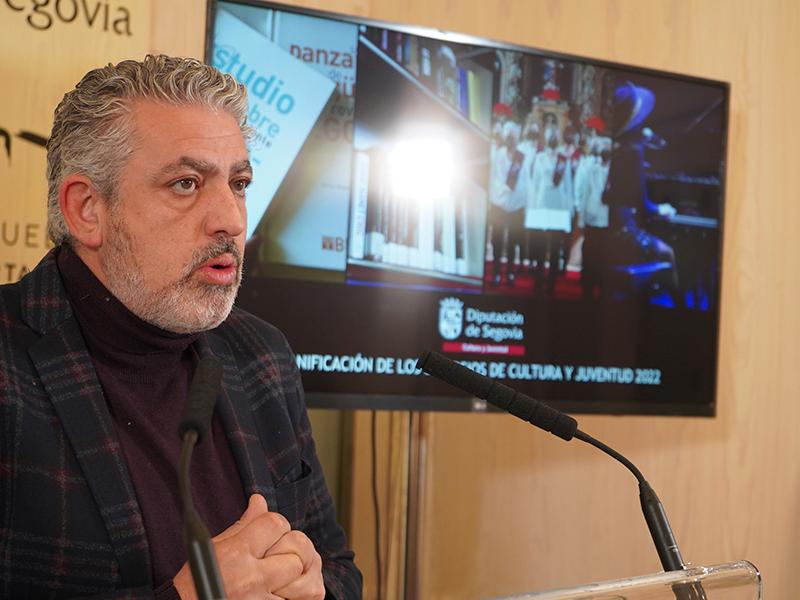 Si hay un escenario que sigue sin restablecerse del todo de las nefastas consecuencias de la pandemia, ese es el de la Cultura, cuyos aforos continúan pendientes de la seguridad sanitaria y cuyos profesionales siguen sin contar con un volumen de actividad similar al anterior a la pandemia. Desde la Diputación de Segovia se viene estando pendiente de su situación desde el inicio de la crisis sanitaria y han sido muchas las propuestas que a lo largo de 2020 y 2021 han sido reorientadas para favorecer al sector y que, durante 2022, prevén ir recuperando su total normalidad, con el objetivo de poder garantizar a los habitantes de todo el territorio segoviano el acceso a una propuesta cultural variada y de calidad. Así lo ha reconocido esta mañana en rueda de prensa el diputado del Área de Cultura, Juventud y Deportes, José María Bravo, quien ha comparecido para ofrecer la planificación de los Servicios de Cultura y Juventud, que de nuevo colaborarán con los ayuntamientos para la realización de actividades, tratarán de incentivar al tejido artístico de la provincia para favorecer su contratación y la subvención de su actividad y continuarán promocionando la investigación y difusión del patrimonio cultural segoviano.