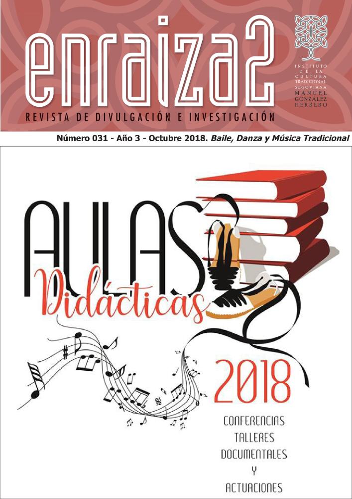 Superando la cifra de los 30 Números de la Revista Digital enraiza2, el otoño del 2018 se asoma ante el lector con un claro objetivo de difusión: darle a conocer datos sobre los orígenes, la evolución y el estado de la cuestión del Baile, la Danza y la Música Tradicional en la provincia de Segovia, temáticas abordadas en el Programa de Formación Aulas Didácticas IGH 2018. De esta forma, la Sección La Urdimbre abre sus páginas al balance de las conferencias dedicadas a Los protagonistas del Baile y la Danza, sesión celebradas en cuatro localidades entre agosto y septiembre a cargo de la investigadora y responsable de esta cabecera E. Maganto, y la primera de las jornadas organizadas en torno a la Música Tradicional, que convocó al público el pasado 23 de septiembre en La Granja de San Ildefonso, siendo coordinada por la musicóloga F. Álvarez Collado.
