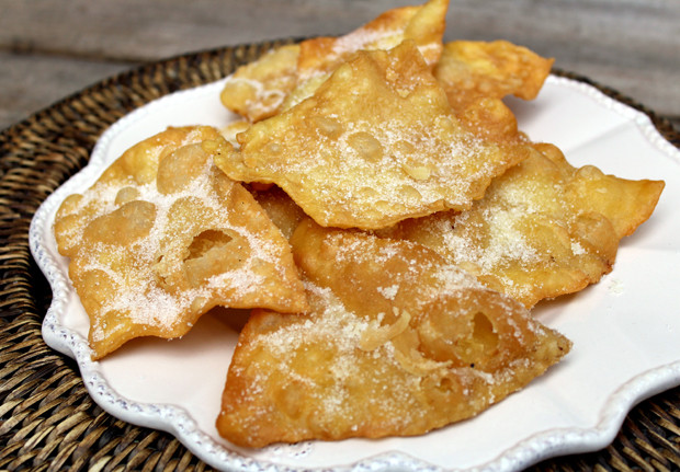 Se calienta abundante aceite en una sartén y se fríen las porciones por los dos lados. Retiradas de la sartén se escurren y se espolvorean de azúcar.