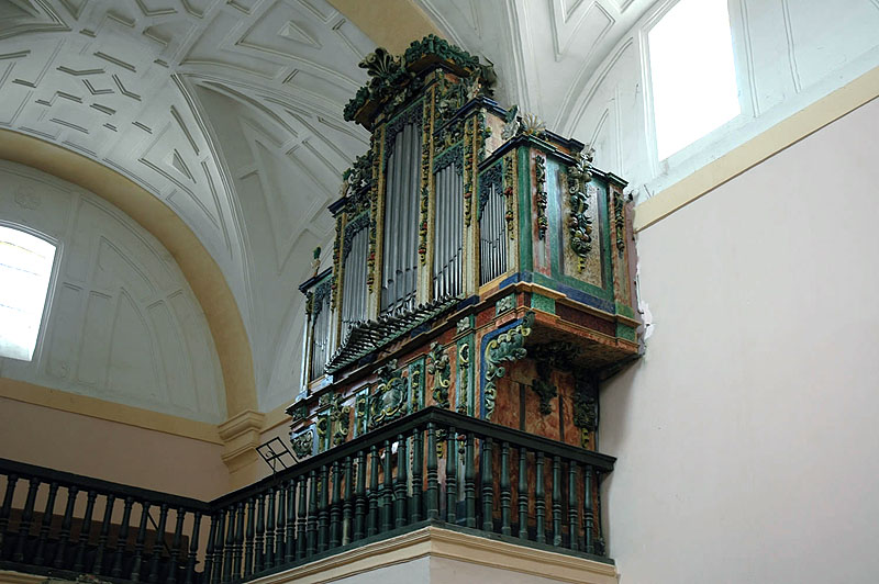 El órgano tiene 13 palmos, es decir su caño mayor en la fachada tiene una medida de 2.5 metros. Consta de un teclado de 45 notas, con siete registros en la mano izquierda y nueve en la derecha. Cuenta con 618 tubos siendo el mayor de 2.5 metros de altura y 0.15 metros de diámetro, y el más pequeño de 0.12 metros de longitud por 0.05 metros diámetro. Los tubos están realizados en una aleación de estaño y plomo.