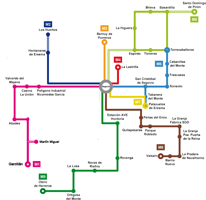 Transporte Transporte TRANSPORTE METROPOLITANO DE SEGOVIA: LÍNEA M1: ABADES-SEGOVIA HORARIOS: Para ver los horarios de la línea M1, haz click aquí. LA SEPULVEDANA: ABADES-MADRID VIERNES Madrid-Abades DOMINGO Abades-Madrid