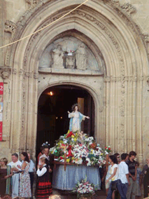 Coincidiendo con el final de la cosecha del cereal tienen lugar, del 13 al 17 de agosto, las fiestas titulares en Honor a nuestra patrona, la Virgen de la Asunción. Son muchos los actos que se llevan a cabo y que abarcan desde los actos religiosos como la ofrenda floral a la Virgen del día 13 y la procesión el 15 de agosto, con el baile de las tradicionales jotas; pasando por los festejos taurinos: novilladas y encierros y la animación de las verbenas y charangas hasta los campeonatos deportivos entre los que sobresalen las competiciones de natación que se llevan celebrando desde el año 1970.