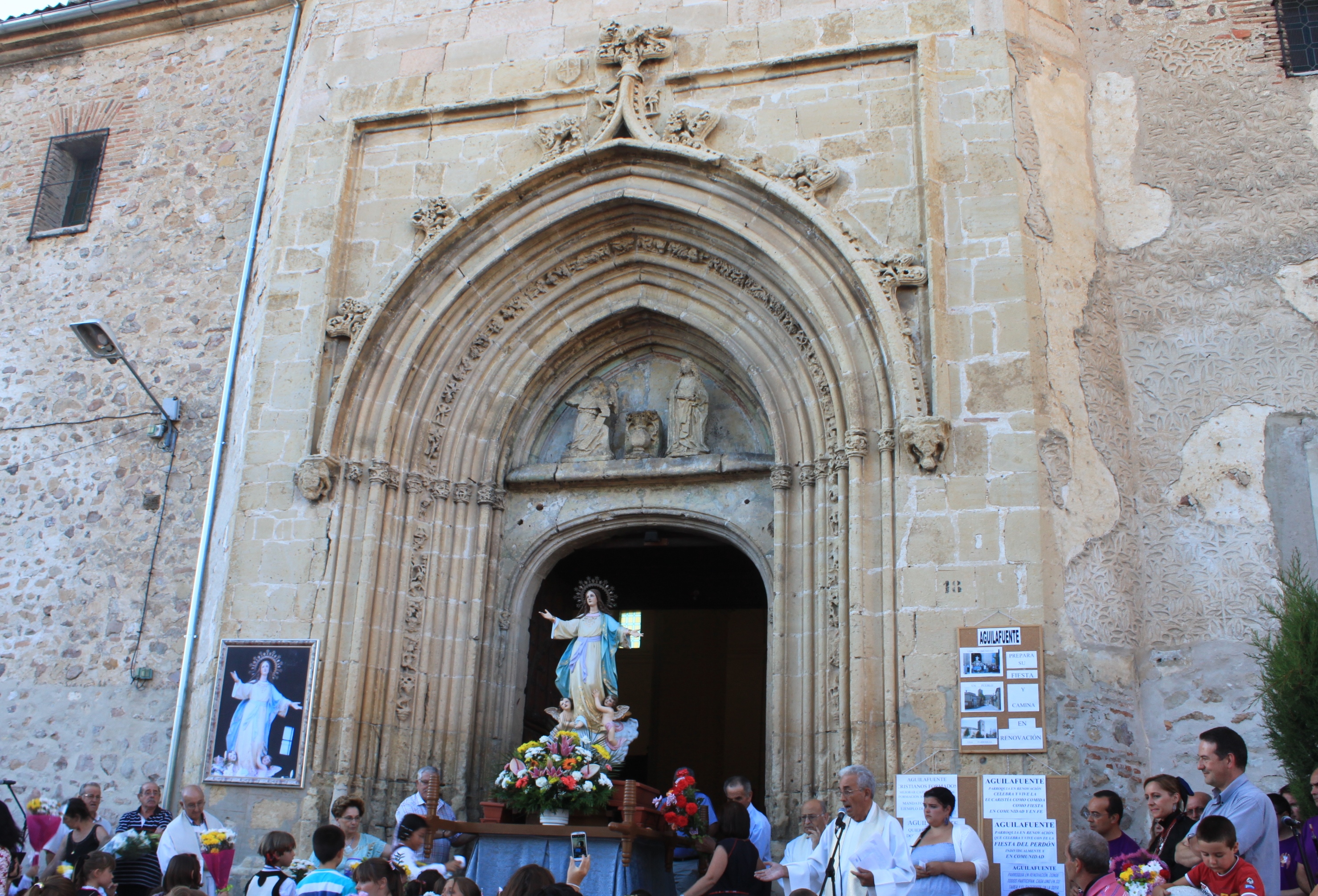 Este bello acto con más de 25 años de antigüedad , da comienzo a las Fiestas patronales en honor a la Virgen de la Asunción, el día 13 de agosto.Se inicia con una procesión que parte del centro Cultural de la localidad. Al son de dulzainas y tamboril, la numerosa comitiva, ataviada con trajes regionales, desfila camino de la Iglesia de Santa María. Aquí se recibe a la Virgen con bailes,música y paloteos. Seguidamente tiene lugar la ofrenda floral en el atrio. Engalanada por un sin fín de flores, se le dedican poemas, peticiones, danzas y paloteos. Este acto finaliza con el canto de la jota a la Virgen. El actual grupo folclorico de Aguilafuente lleva en funcionamiento desde el año 1980, año en el que se recuperaron después de 25 años de ausencia.