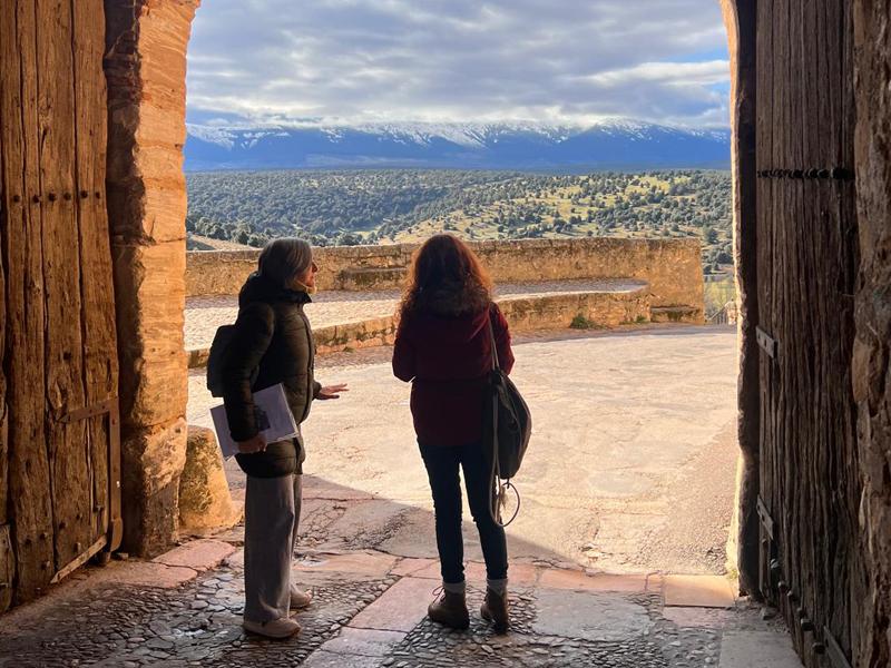 La ruta se adentró en el límite de la provincia de Segovia con la de Burgos, en concreto en Milagros, donde visitaron las ruinas de la ermita de Valdeherreros, otro escenario de película, para regresar de nuevo a territorio segoviano, a Maderuelo, uno de los pueblos más bonitos de Segovia y de España, declarado Conjunto Histórico Nacional y Bien de Interés Cultural (BIC). Esta pequeña localidad cuenta con innumerables localizaciones de cine, gracias a su patrimonio histórico, cultural y natural, y fue elegida como escenario en el año 2010 para el rodaje de la serie de Jorge Torregrosa, ‘Tierra de Lobos’. Hay que recordar, como se hizo durante el viaje de prensa, que las magníficas pinturas románicas que contenía este templo fueron trasladadas al Museo del Prado en 1947, cuando fue construido el pantano de Linares, que cubrió el pueblo de Linares del Arroyo. La jornada concluyó ya en tierras sorianas, con el traslado de los periodistas a Medinaceli, donde sigue la ruta ‘Territorio Oeste’.