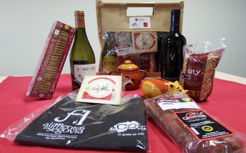 El lote de productos segovianos incluía vino, queso, legumbres, embutidos y pastas.