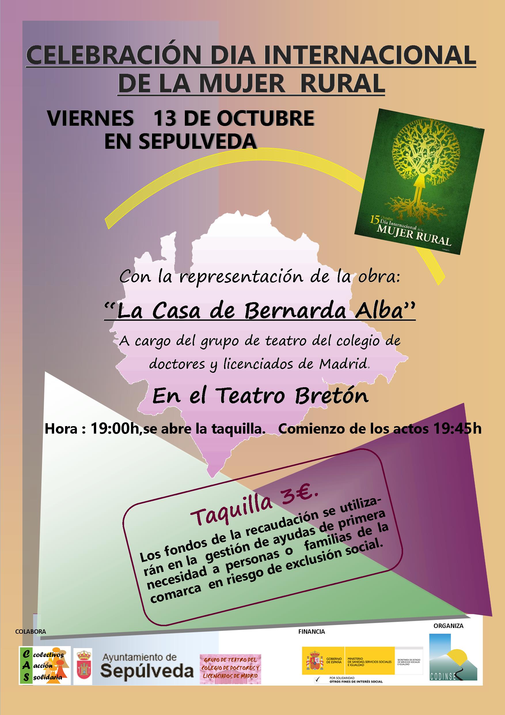 La celebración, que se llevará a cabo en Sepúlveda, tiene como actividad central la representación de la obra de teatro LA CASA DE BERNARDA ALBA, ya que refleja la sociedad de la mujer en uno de los momentos más oscuros de su historia.