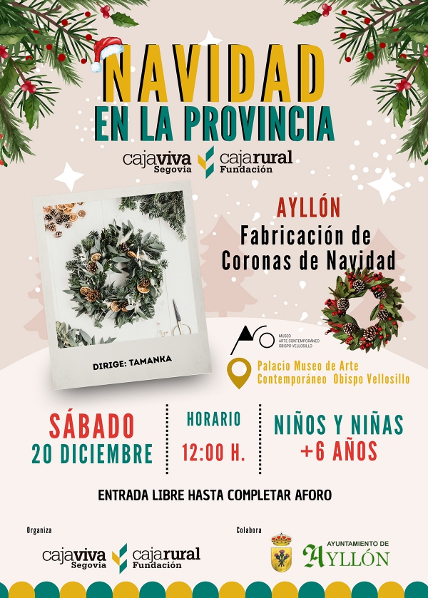Taller de fabricación de coronas de Navidad Lugar: Palacio Museo de Are Contemporáneo Obispo Vellosillo Fecha: Sábado 20 de diciembre, a las 12 h.