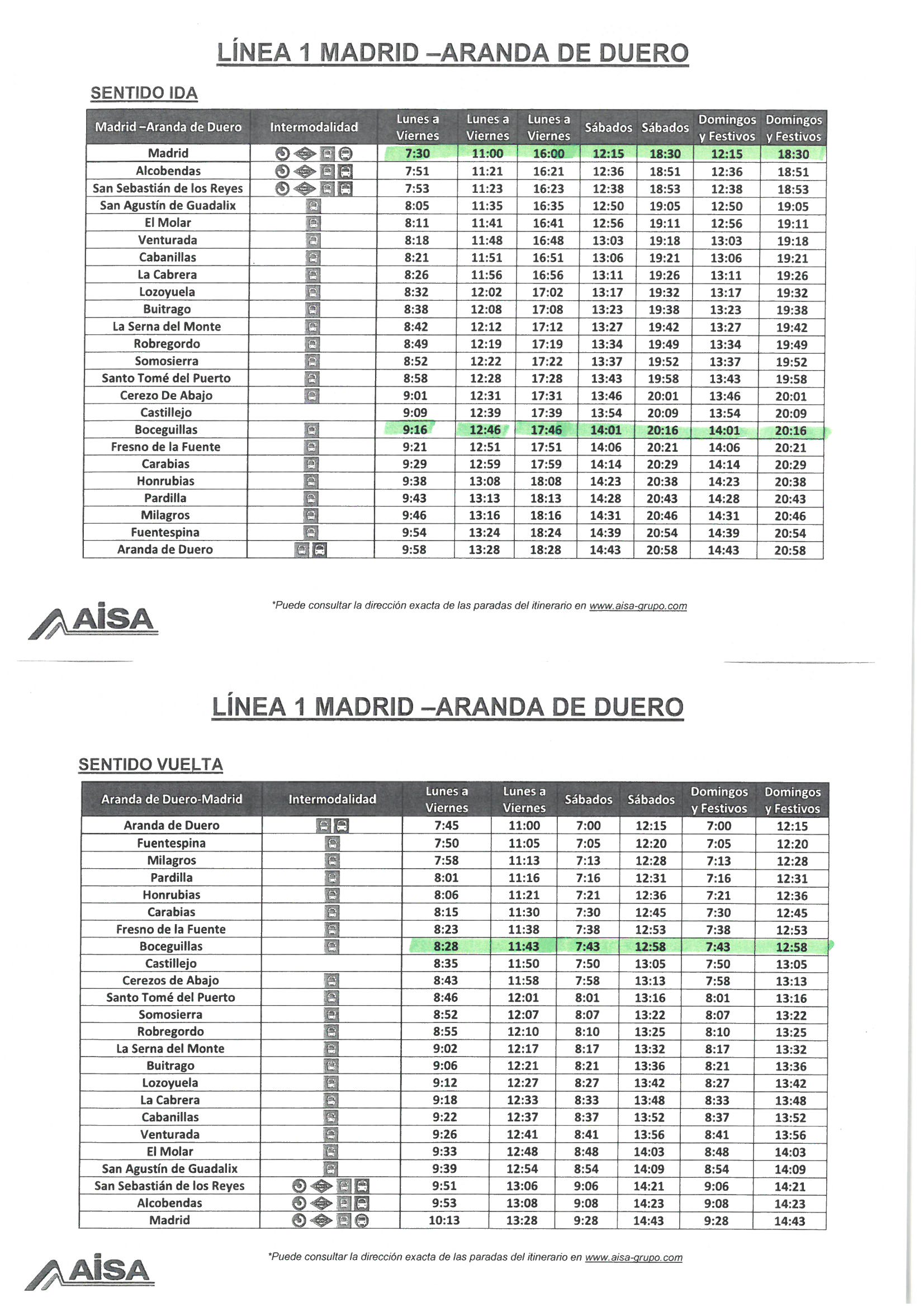 Desde hoy, día 19 de diciembre, entra a prestar el servicio de transporte de viajeros, ruta Madrid-Aranda de Duero la empresa Aisa.