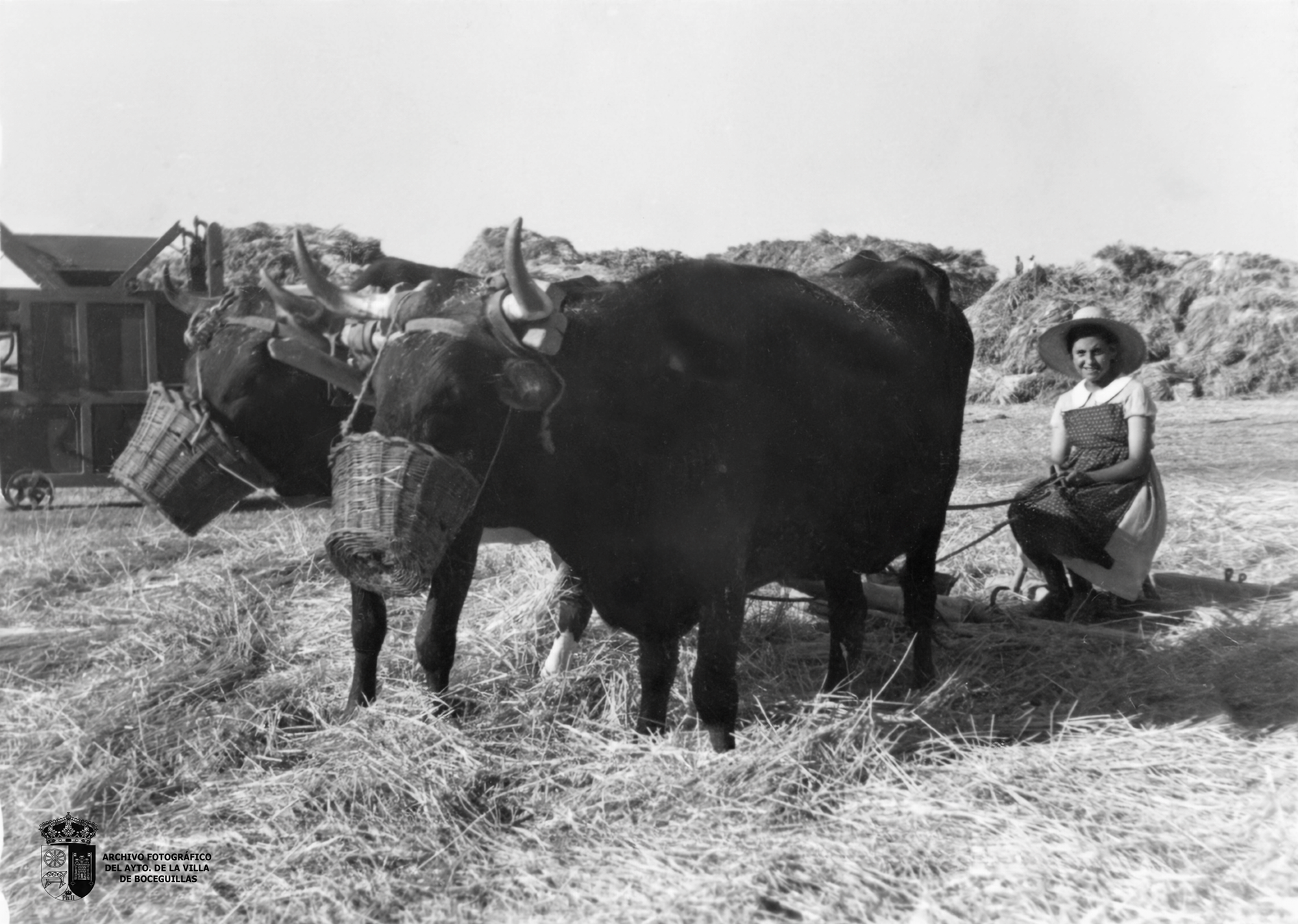 Lola González en las eras trillando