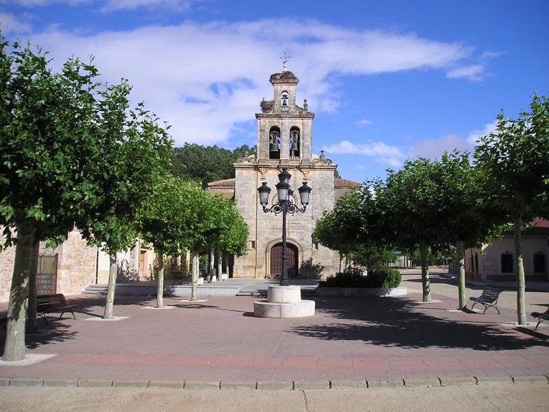 Sobre un terreno llano emplazado en el ángulo que forma el arroyo El Arenal con la calzada de Sepúlveda a Boceguillas ordenaron, dentro de un contorno alargado e irregular, la superficie de la Plaza Mayor. En ella están dispuestas, frente afrente, ¡as entradas a la Casa Consistorial y al templo parroquial de Nuestra Señora del Rosario, cuya cabecera se utiliza como muro para el juego de pelota, extendiéndose a su alrededor y delante de la calzada una superficie libre. La enrasada y moderna Casa Consistorial consta de dos plantas, con balcón volado en el centro de la segunda y edículo para el reloj. Las casas de la plaza, también enrasadas y con revocos de suaves colores, tienen dos plantas; una de ellas con su tejado a tres aguas, y otra, antigua y blasonada, la habitó el Cardenal Cisneros, según se admite por tradición. Es una plaza de aspecto austero, en la que hábilmente no han situado, sino en su entorno, el Juego de Pelota, lo que constituye una singular estructura.