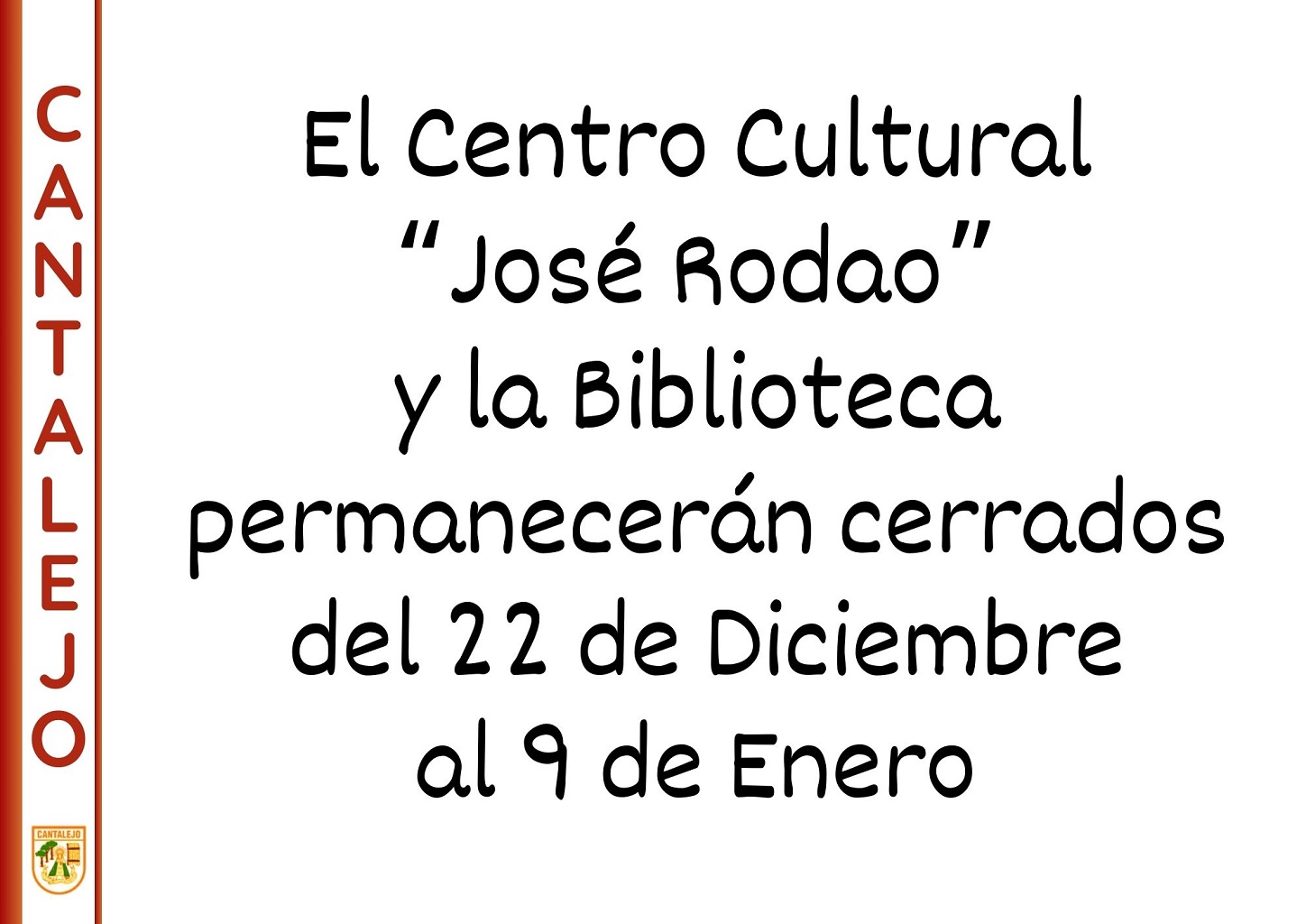 El Centro Cultural y la biblioteca permanecerán cerrados del 22 de diciembre al 9 de enero incluidos. Esto no afecta a las actividades programadas.