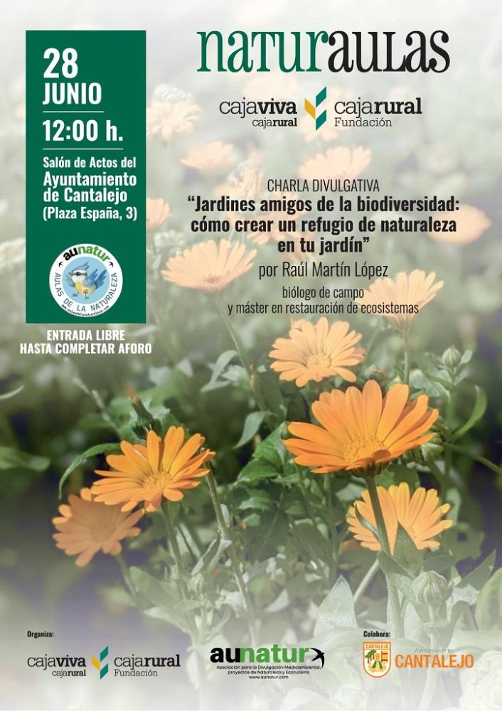 Charla divulgativa "Jardines, amigos de la biodiversidad: cómo crear un refugio de naturaleza en tu jardín" el 28 de junio en el salón de actos del Ayuntamiento de Cantalejo a las 12:00 h.