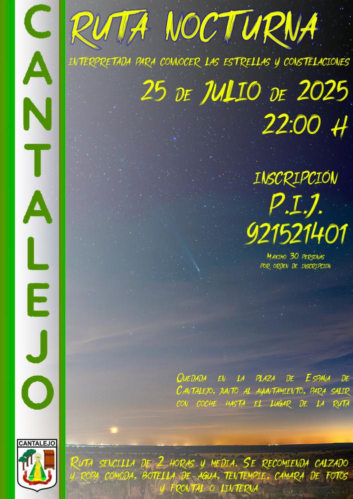 Ruta sencilla de 2:30 h de duración. Se recomienda calzado y ropa cómoda, botella de agua, bocadillo, cámara de fotos y frontal o linterna.