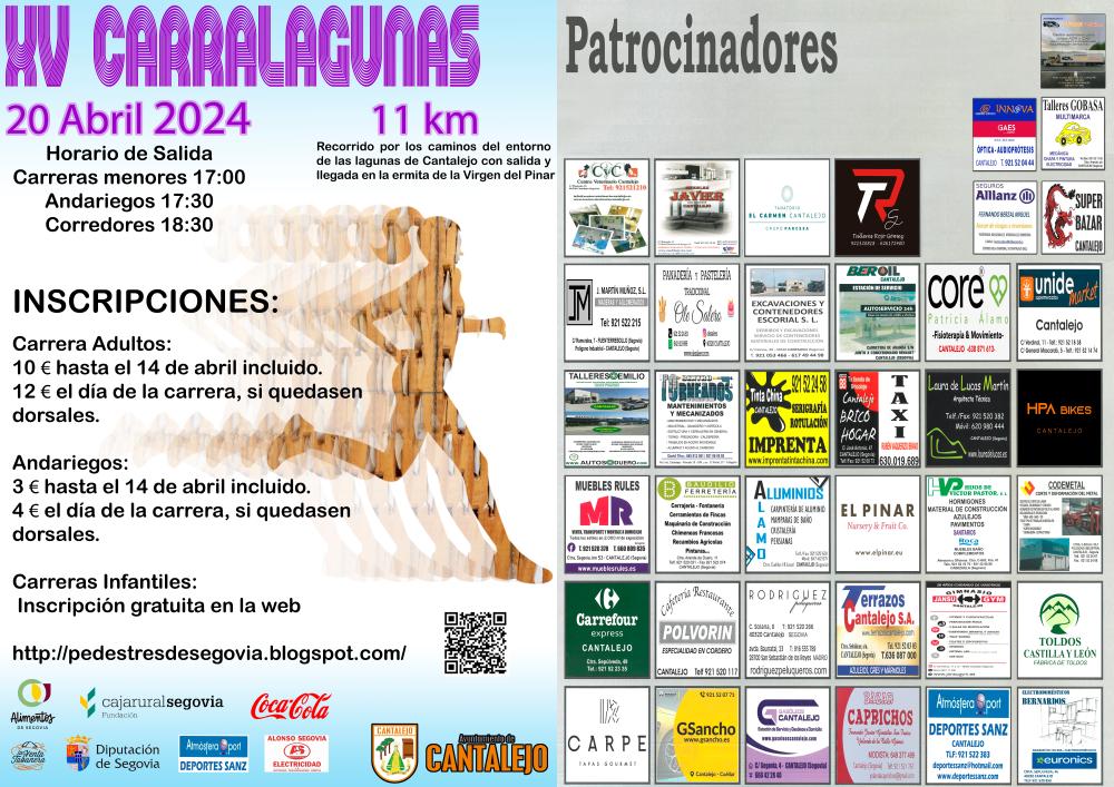 La carrera pedestre Carralagunas integrada dentro del Circuito Provincial de Carreras Pedestres de Segovia y organizada por el Ayuntamiento de Cantalejo será el próximo día 20 de abril de 2024. Con dos opciones para participar, andariegos y corredores.