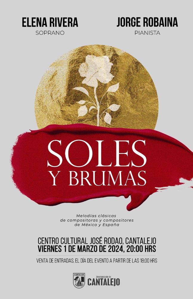 El programa que la soprano, Elena Rivera y el pianista, Jorge Robaina presentan, nos acerca a la música de la España de finales del siglo XIX y principios del XX, proponiendo una hermosa mezcla de melodías mexicanas y españolas clásicas.