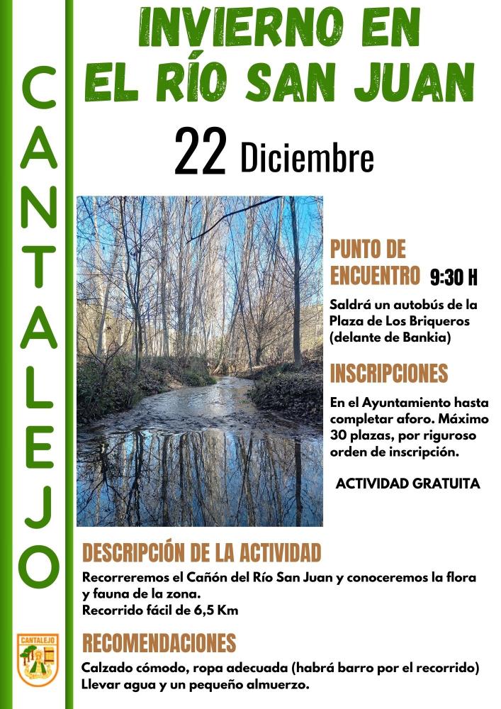 Recorreremos el Cañón del Rio San Juan para conocer su flora y fauna. Recorrido de 6,5 km. Saldrá autobús desde la Plaza de Los Briqueros (Bankia) hasta el San Juan a las 9:30h.