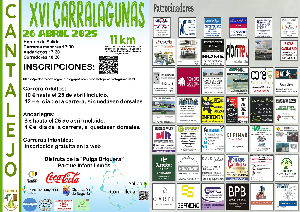 La carrera pedestre Carralagunas integrada dentro del circuito provincial de carreras pedestres de Segovia, y organizada por el Ayuntamiento de Cantalejo, será el próximo día 15 de abril de 2023.