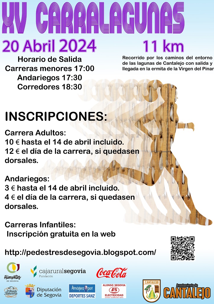 La carrera pedestre Carralagunas integrada dentro del Circuito Provincial de Carreras Pedestres de Segovia y organizada por el Ayuntamiento de Cantalejo será el próximo día 20 de abril de 2024. Con dos opciones para participar, andariegos y corredores.