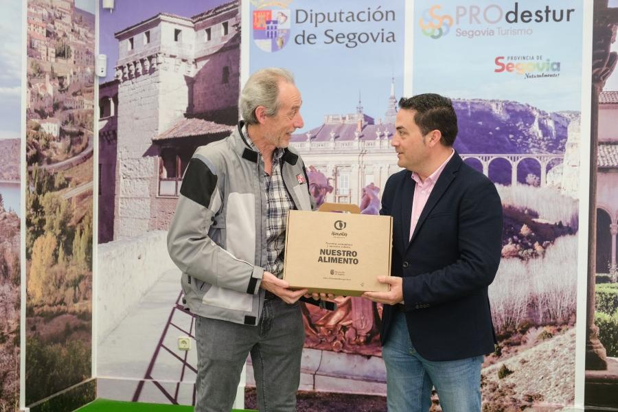 El diputado de Turismo, Javier Figueredo ha entregado a José Antonio Llorente la cesta de Alimentos de Segovia como ganador del sorteo del Pasaporte Motero de la provincia de Segovia. Esta iniciativa propone a los amantes del motociclismo diversas rutas por la provincia con una serie de paradas predeterminadas en las que deben sellar el pasaporte emitido por el Área de Turismo de la Diputación y depositarlo completado en su sede (Casa del Sello) para participar en el sorteo mensual de un surtido de productos de la marca agroalimentaria de la institución provincial, Alimentos de Segovia.